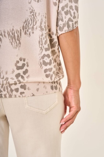 Светлая блузка с леопардовым принтом в серых оттенках. Элегантный фасон и свободный крой добавляют образу утонченности. Леопардовое графичное оформление в спокойных серых тонах придает индивидуальность и изысканность. Ткань высокого качества обеспечивает максимальный комфорт и удобство в течение всего дня. Прекрасно дополняет гардероб, создавая стильный и современный образ.