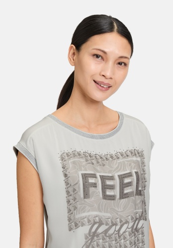 Эта рубашка-блузка гармонично сочетает в себе комфорт и стиль. Сочетание материалов обеспечивает удобную посадку, а стразы и современный дизайн делают рубашку по-настоящему эффектной. Спортивные ребристые манжеты добавляют стильный штрих к повседневному образу, делая её идеальным вариантом для непринуждённых нарядов для отдыха. Универсальный фаворит с модным оттенком!