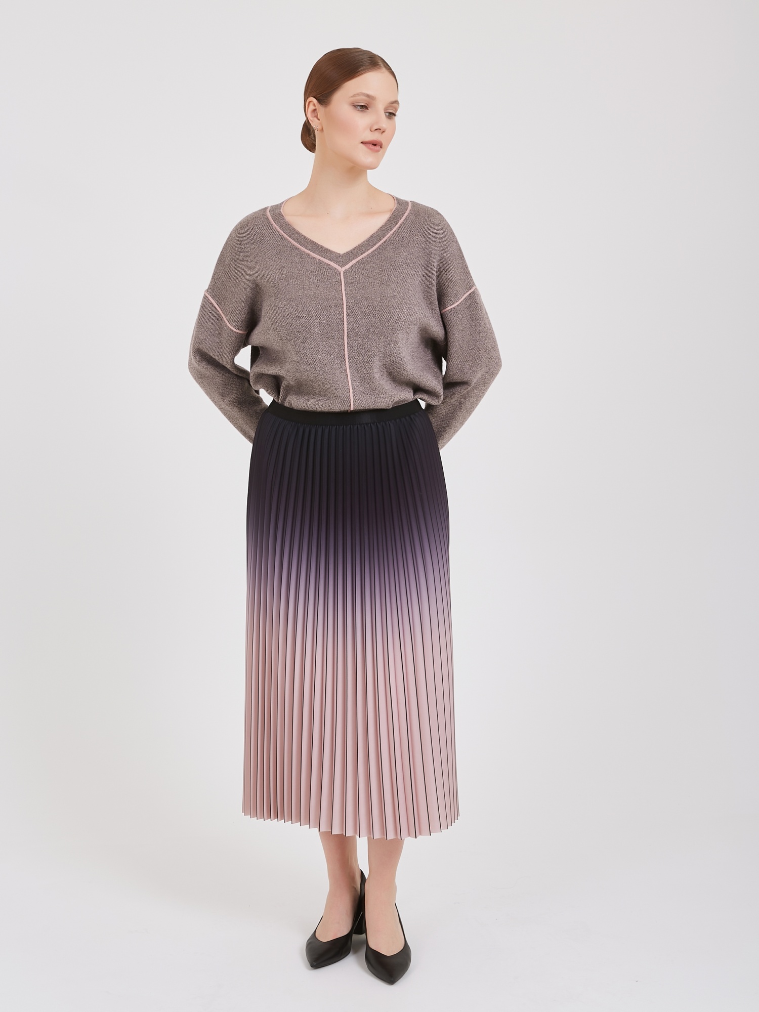 Эта юбка с градиентом от черного у талии до светло-розового к низу сочетает в себе элегантность и современность. Плиссировка с вертикальными складками добавляет объем и динамику, создавая стильный и универсальный образ. Осень-Зима'25/26. Капсула "Лиловый шар"